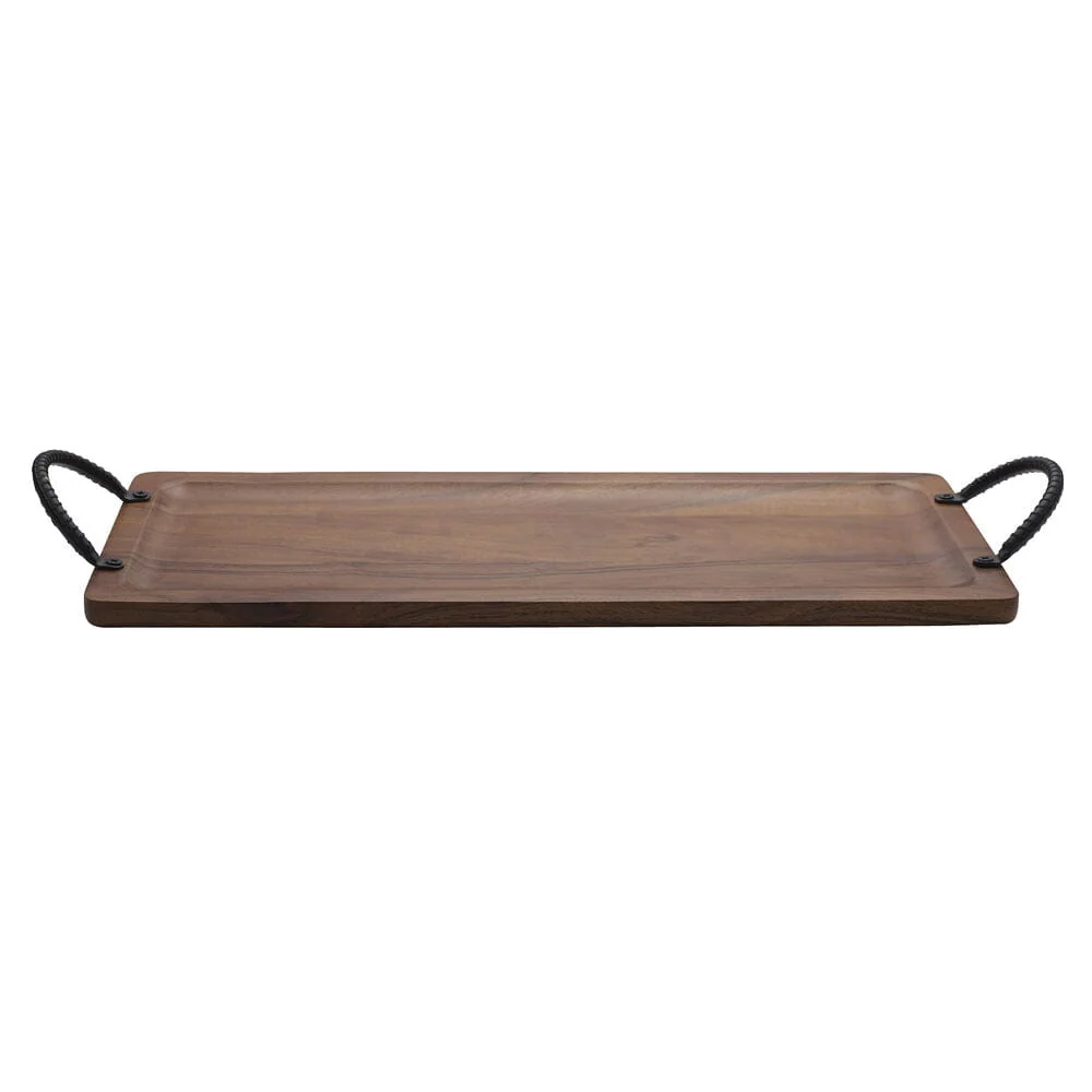 This Acacia Wood Serving Tray with Handles is crafted with care and precision, this serving board seamlessly blends natural beauty with modern sophistication. The addition of sturdy handles not only enhances the board's functionality but also elevates its aesthetic appeal. These handles provide a secure grip, allowing you to transport and present your culinary creations with confidence and style. Whether you're hosting a casual gathering or a formal dinner party, this versatile serving board is the perfect centerpiece for showcasing an array of appetizers, cheeses, charcuterie, or artisanal bread.