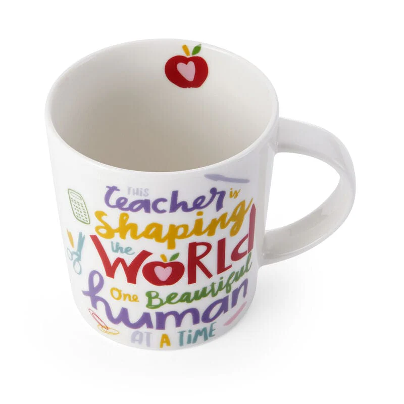 Celebrate your impact with this inspiring Teacher Mug, featuring the message “This teacher is shaping the world one beautiful human at a time.” With colorful lettering and playful classroom icons, this durable ceramic mug is perfect for enjoying your favorite beverage and makes a thoughtful gift for any educator.